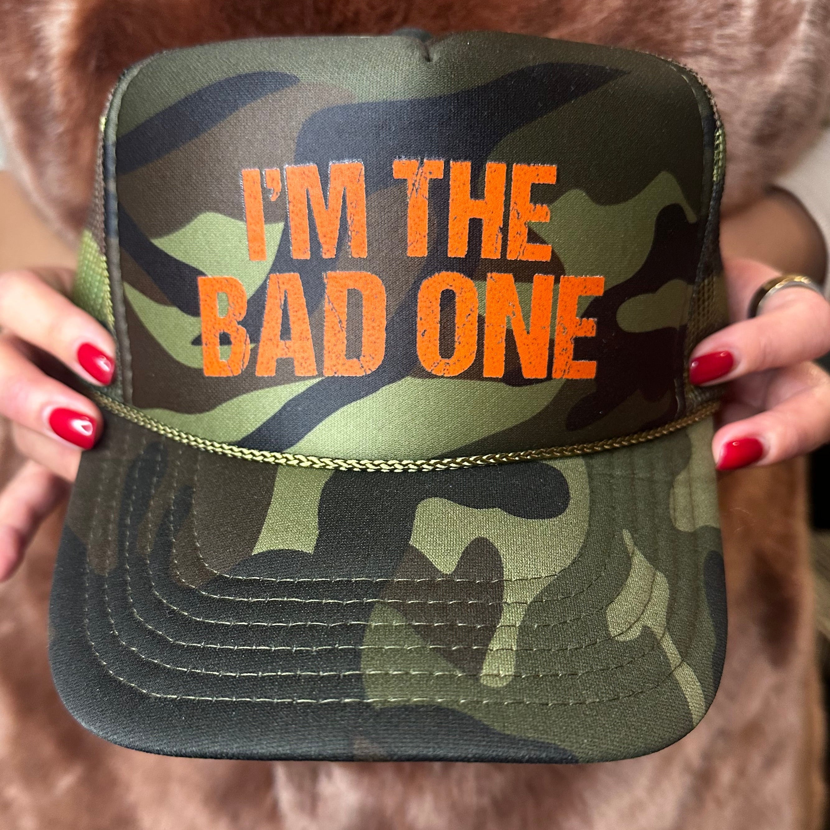 Soft and comfortable snapback trucker hat in camo with electric orange font. We love this one!