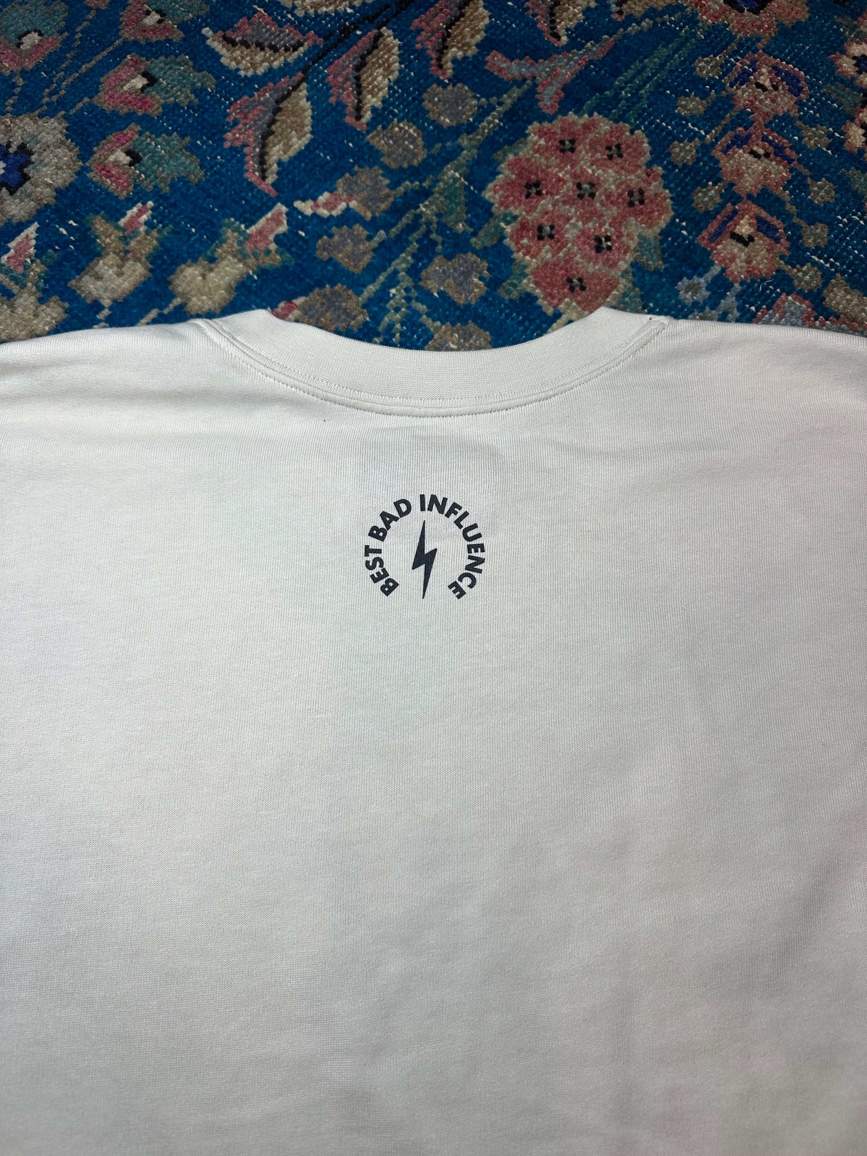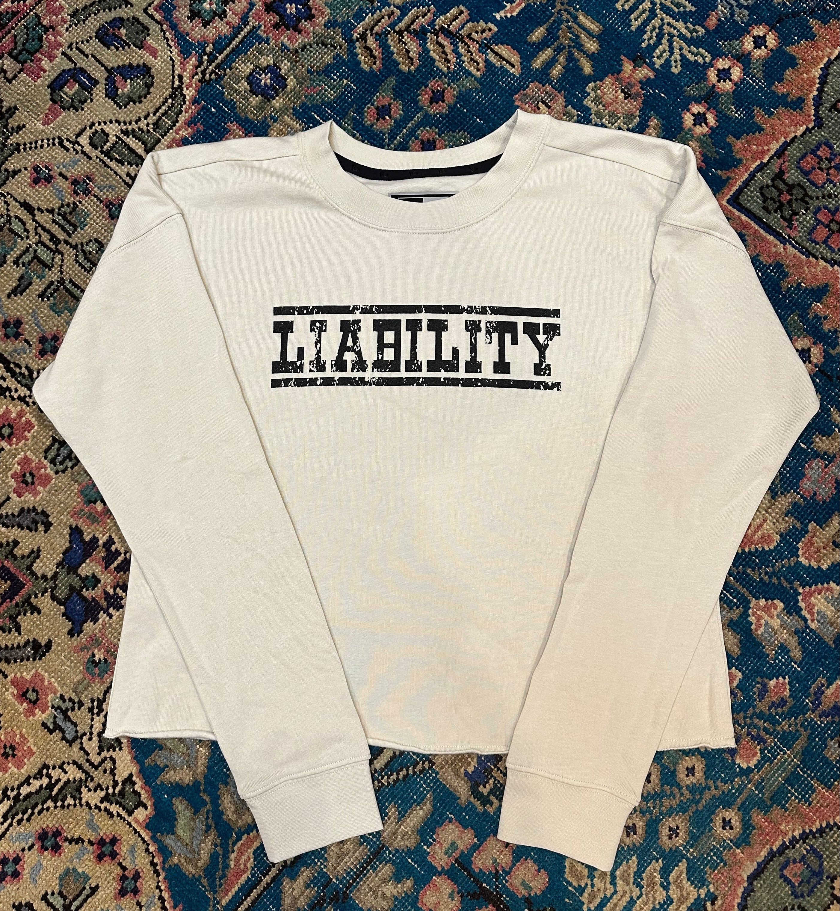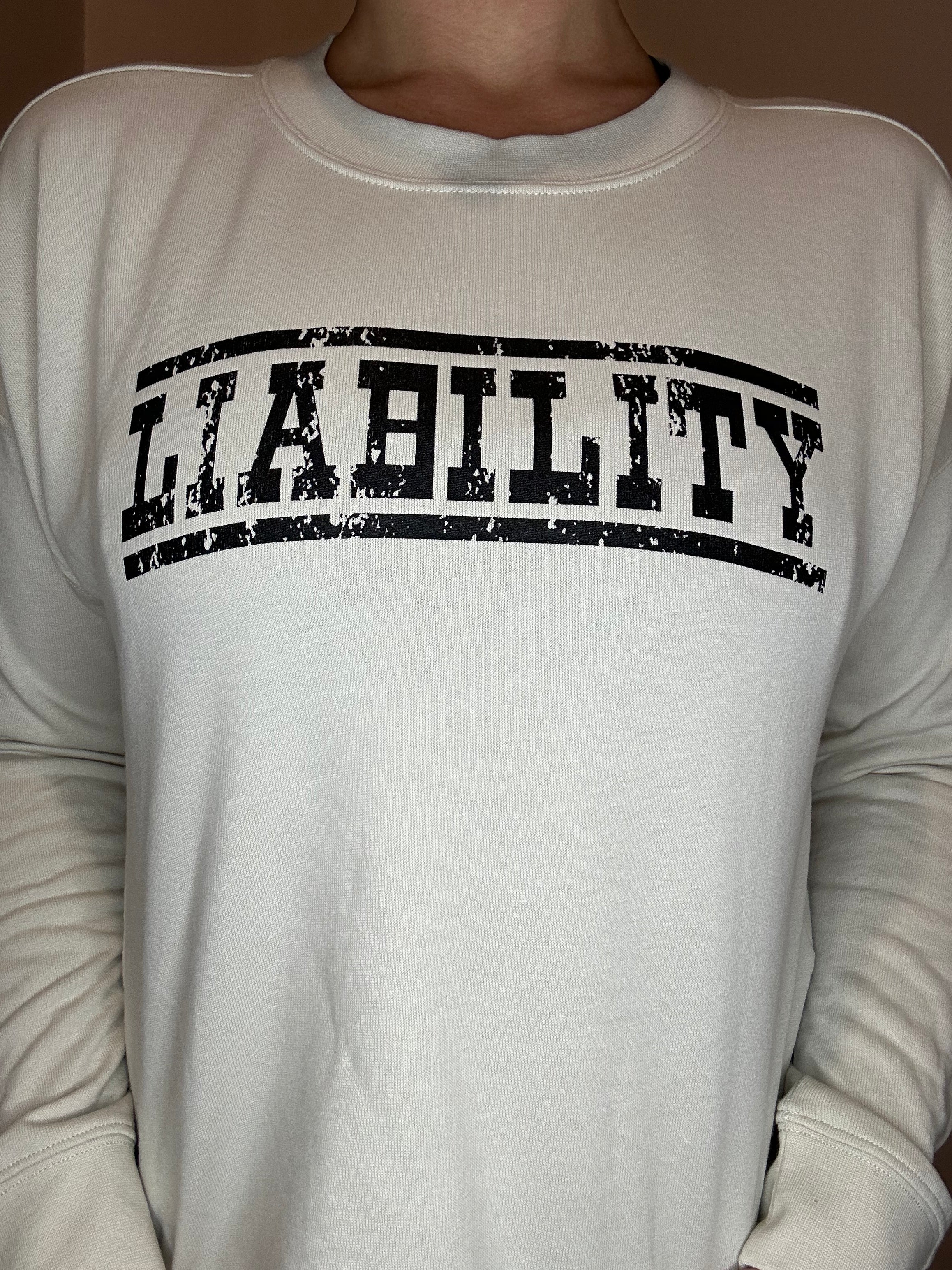 Talk about sassy! Oh, and it's so comfortable. You will want to wear this cream crew every single day. Promise! Model wearing size small.
